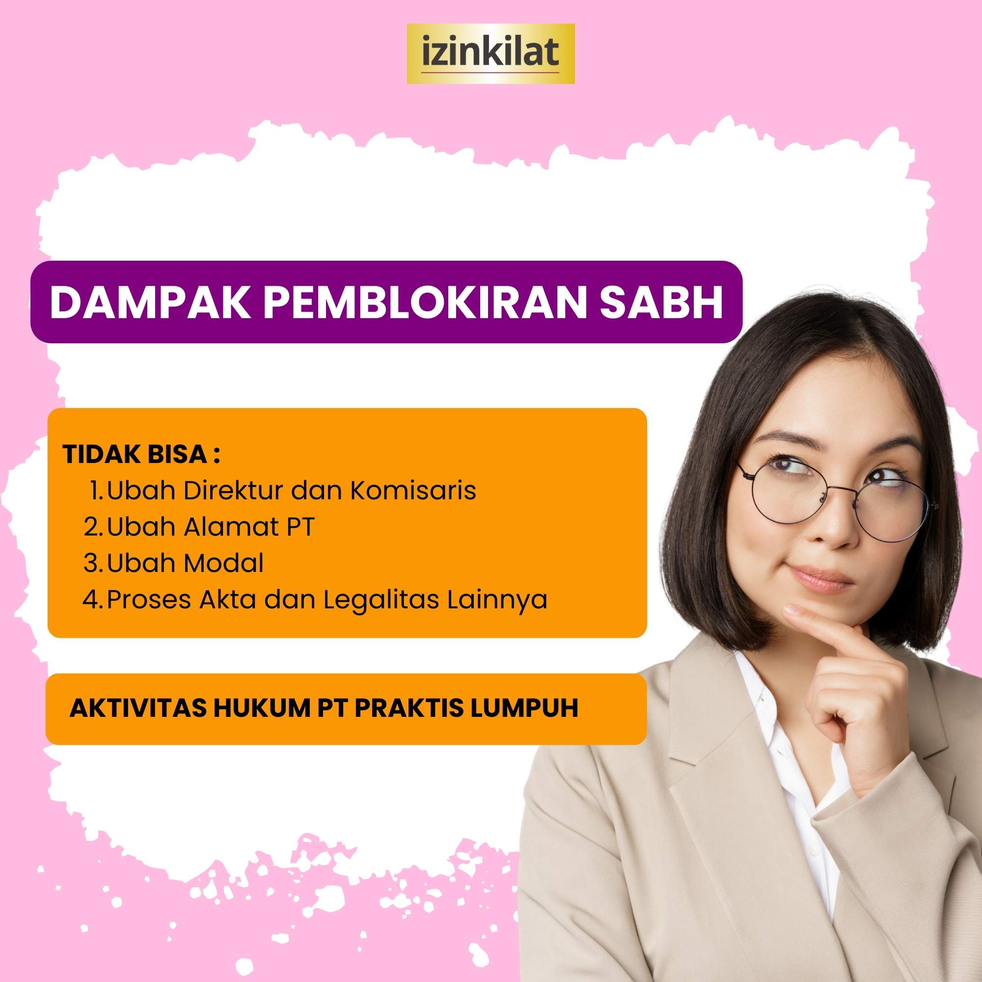 Akses SABH dapat diblokir, yang berarti PT tidak dapat melakukan perubahan data, perubahan direksi, hingga pengurusan legalitas lainnya.