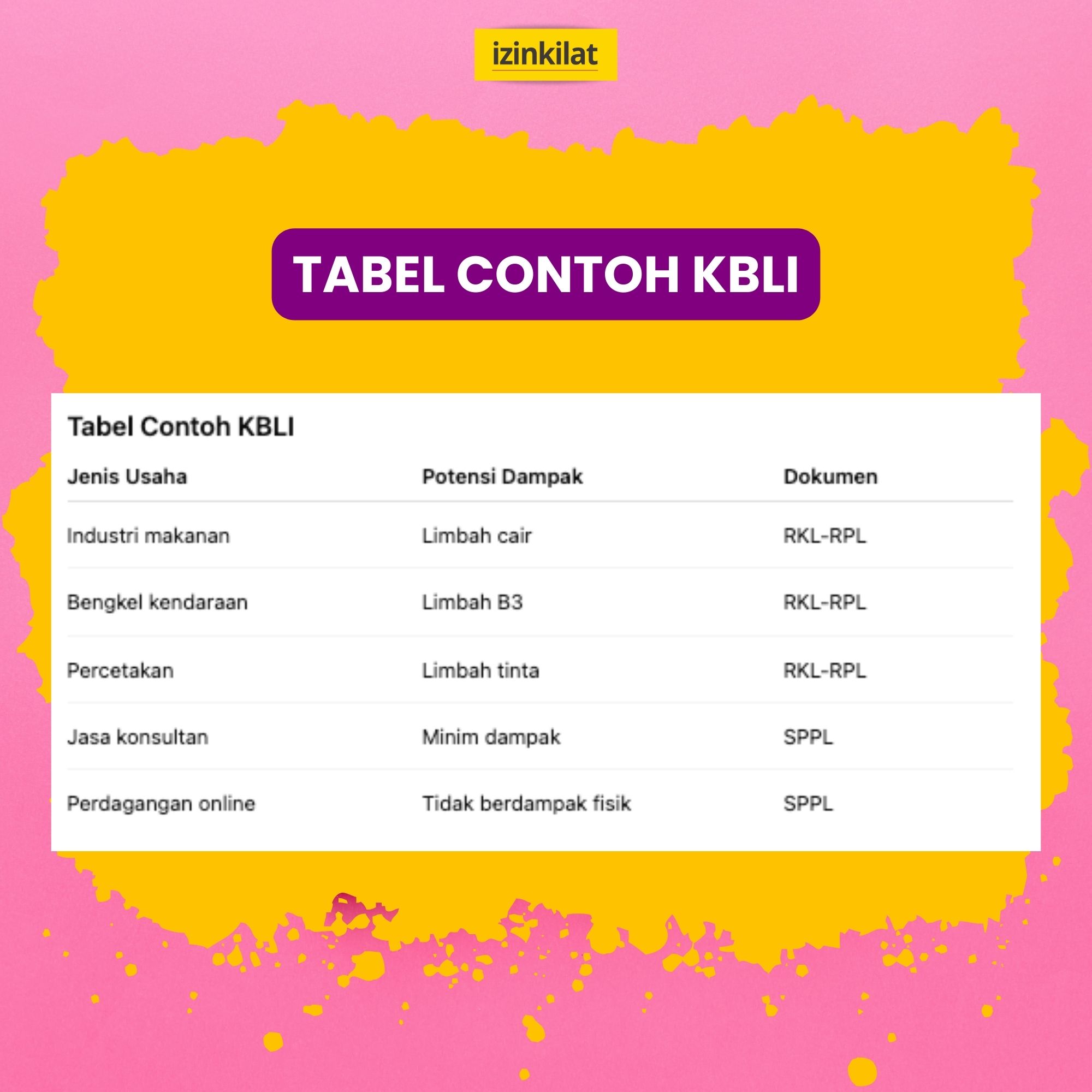 Beberapa sektor usaha yang cenderung membutuhkan RKL-RPL antara lain industri pengolahan, percetakan, bengkel, dan usaha yang menghasilkan limbah.